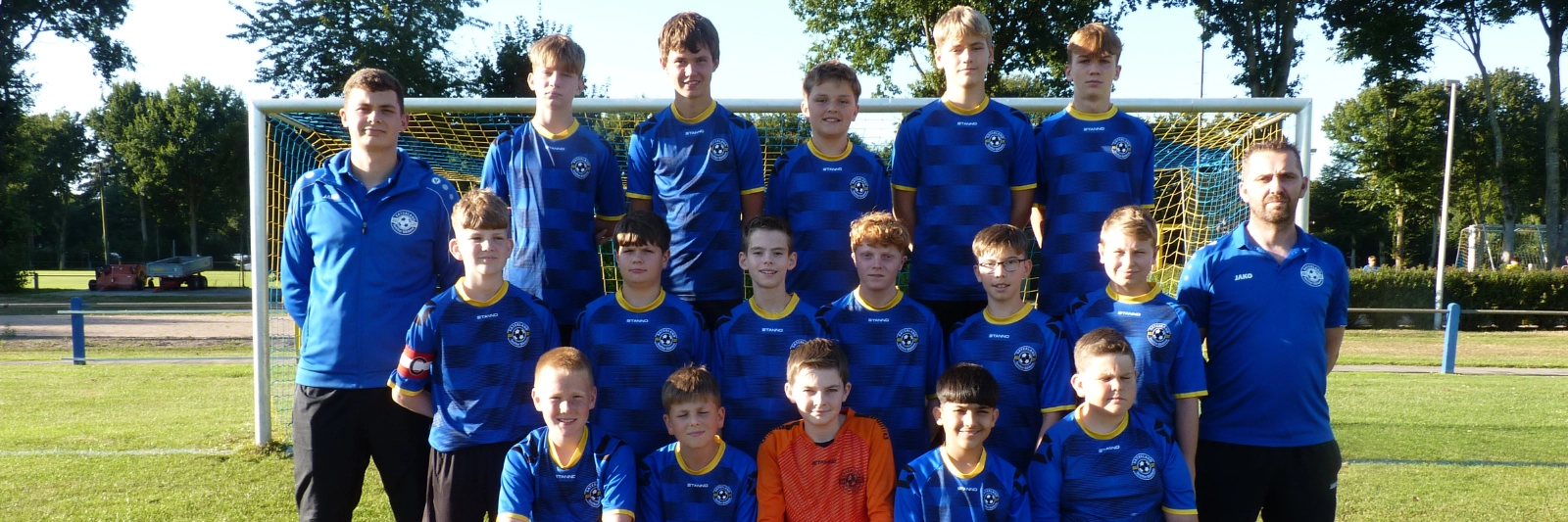 Mittlere Reihe (v.l.n.r.): Luis Büscher-Rudloff (Trainer), Florian Kaiser, Klaas Reiners, Moritz Watermann, Hannes Lübbers, Lucas Eirich, Andrej Heupel, Wolfgang Böhmann (Trainer)